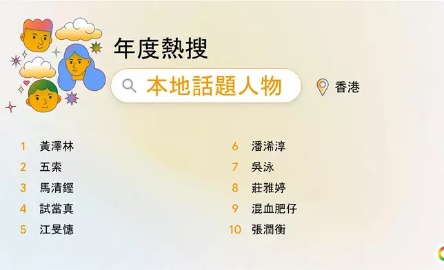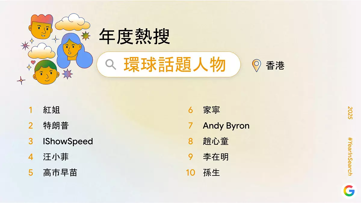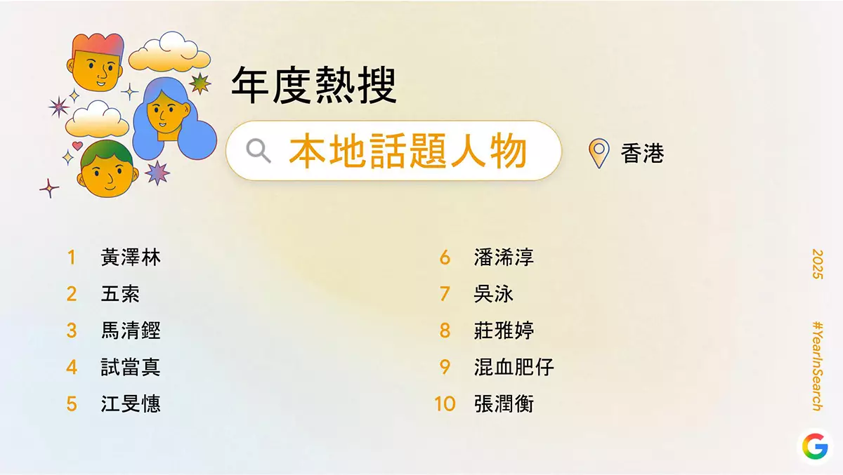 Google 香港 2025 年度熱搜本地話題人物 Google 香港 2025 年度熱搜環球話題人物
