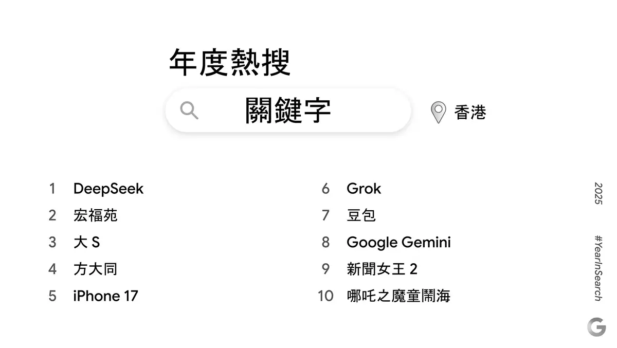 Google 香港 2025 年度搜尋榜