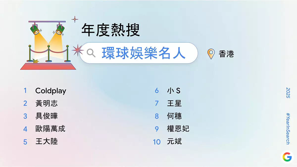 Google 香港 2025 年度熱搜本地娛樂名人 Google 香港 2025 年度熱搜環球娛樂名人