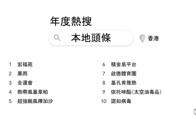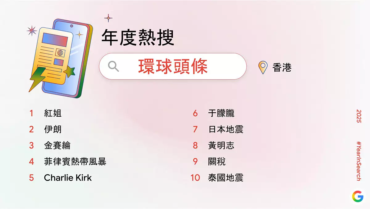 Google 香港 2025 年度熱搜本地頭條 Google 香港 2025 年度熱搜環球頭條