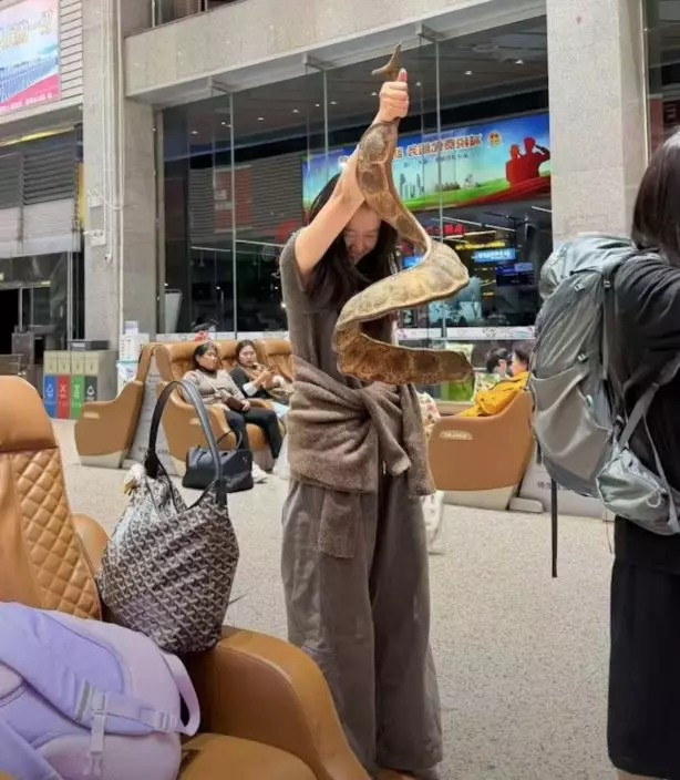 巨型豆莢外形似長蛇 女子掛身上登機惹關注