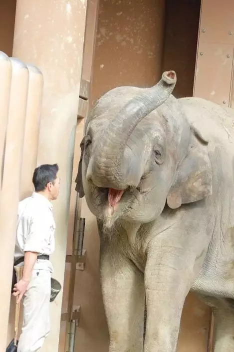 日本動物園一隻亞洲象見到熟悉飼育員即露幸福笑容,網民見溫馨畫面直呼被治癒。