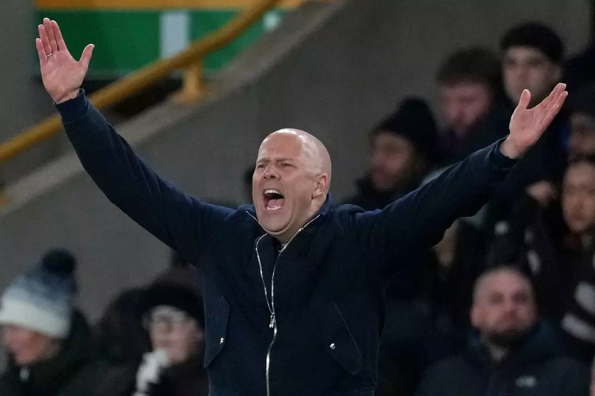 利物浦領隊阿恩史洛特(Arne Slot)在英超對狼隊的比賽中,於場邊作出反應。攝於2026年3月3日,英格蘭伍爾弗漢普頓。(美聯社圖片/Dave Shopland) AP圖片