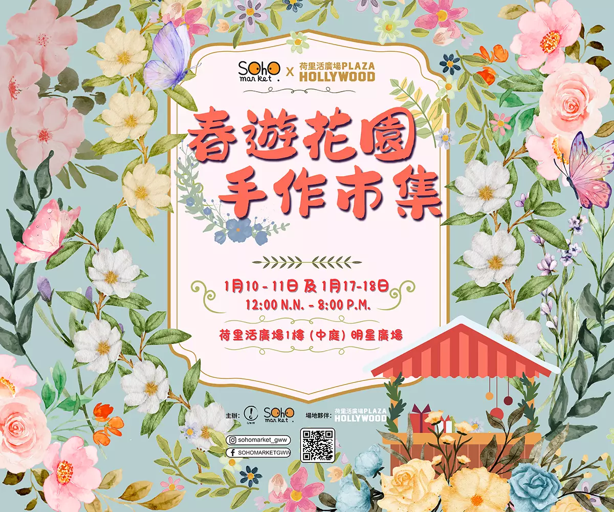 2026年伊始,1月10-11日及1月17-18日,一連兩個星期的週末,本地市集策展單位SOHO MARKET 將於荷里活廣場舉辦一個以花見為主題的活動[SOHO MARKET春遊花園手作市集],除了逾50個藝術文創手作攤檔熱鬧助陣、花樣主題親子工作坊外,還有花海打卡位,希望大人與小朋友可以一起快樂賞花惜花,共度愉快的親子時光。