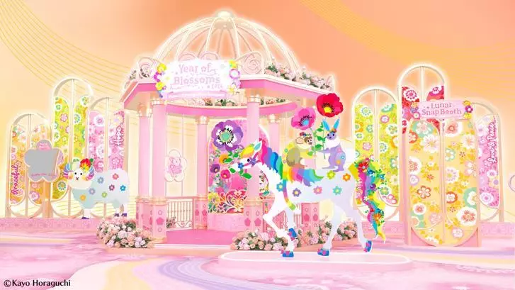 百花光影鏡廊 LED 螢幕與百花幻鏡交織出絢麗流轉的光影詩篇,引領你深入 Kayo Horaguchi 筆下的夢幻花境,沉浸於虛實交融的絢彩世界,珍藏最燦爛歡愉的新春記憶!