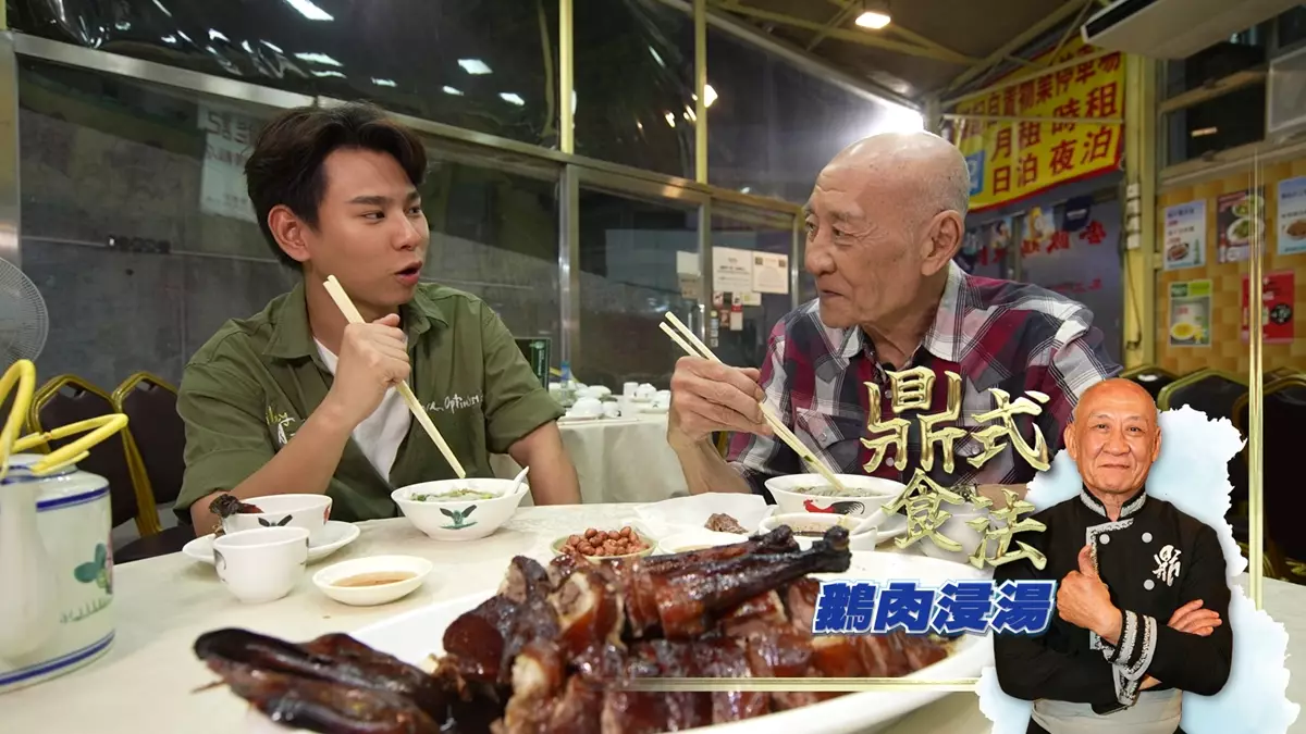 今次鼎爺介紹的燒鵝店是60多年的老字號,特別處是保留炭燒的傳統。吃燒鵝時鼎爺教行仔食鵝背,他說︰「鵝髀得肉多但韌,鵝背就唔同,雖然肉唔多,但肉味香同濃,油脂適中。」至於鵝翼「上庄」及鵝髀「下庄」部位比較,「下庄」肉味更濃更多汁。鼎爺解釋鵝吊起擺放時,肉汁下流聚在下半身。至於吃鵝的最佳時節,傳統認為是重陽節及清明節前後一個月,鼎爺道出箇中原因︰「因為嗰時母鵝要儲肥自己準備生蛋,到生完蛋嘅鵝會瘦就無咁好食。」