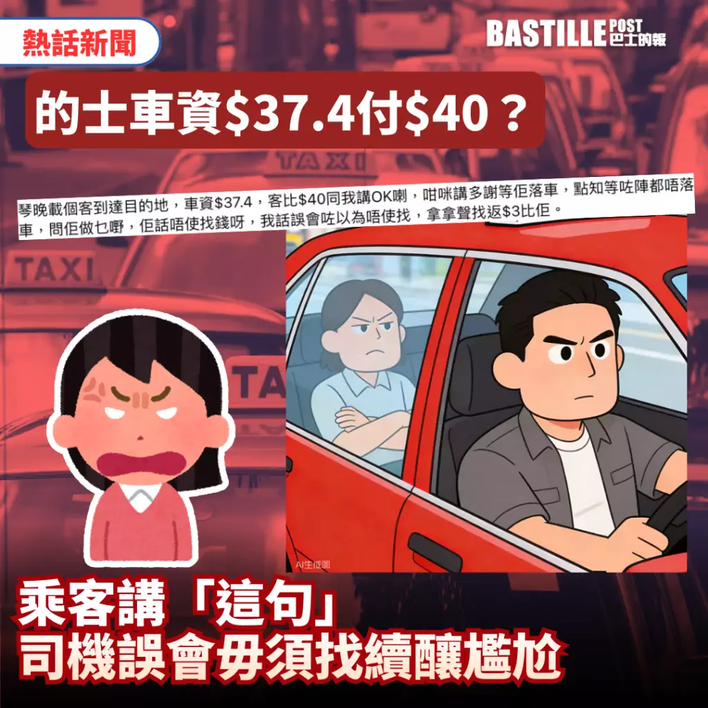 客人問「唔使找錢呀」,司機才驚覺自己誤會了。AI生成圖