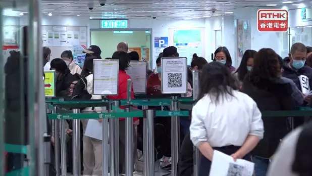大批市民在金鐘的香港牌照事務處外輪候,運輸署稱,有人濫用現場派籌安排。(陳韋丞攝)