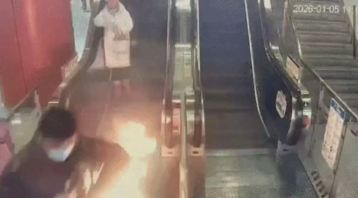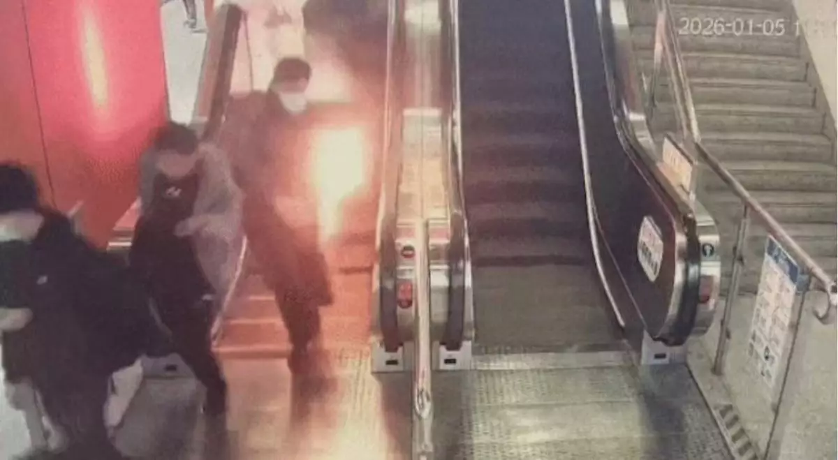 1月5日,上海地鐵15號線上海西站發生一起驚險事故,一名身穿黑色外套的男子由大堂乘扶手電梯下行至月台期間,外套一側突然冒出明火。候車乘客發現後立即閃避,現場職員隨即啟動應急程序,使用滅火器迅速將火勢撲滅,整個過程未對車站運作造成影響。