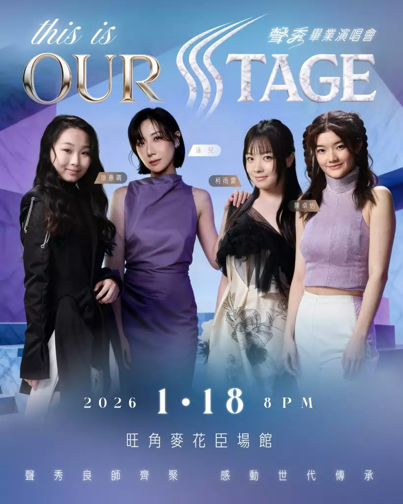 「《this is OUR STAGE》聲秀畢業演唱會」將於下星期日(18日)晚上在麥花臣場館舉行,《聲秀》十六強學員包括馮熙燮、柯雨霏、胡子貝、張津銘、徐惠晴、布子殷、陸卓謙、冼奕瑜、胡港豐、司徒泆、陳卓怡、林潔心、甄敏芳、周智敏、蕭凱恩和穎喬因首次在演唱會舞台上表演,大夥兒心情緊張但也夾雜著興奮。早前公開以導師和學員為主題設計的7款專屬海報後,獲得粉絲一致好評,大會更特別印製《聲秀16強限定小卡》,每位觀眾可以獲得1包隨機4張,當中部份小卡印刷量非常小,大大提升了這些小卡的收藏價值。