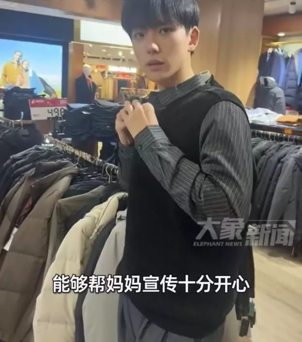 淳於女士表示,因實體店客流量減少,遂邀請主修服表專業的兒子擔任「生招牌」,穿上店內主打的中老年商務裝拍攝短片宣傳。母子最初只是在店內隨手拍攝並上載至網絡,未料迅速爆紅,意外帶火這間經營21年的老店,「我們做男裝的,到年底都是銷售的旺季,顧客也很多。有很多看到視頻想要衣服的,也有來店裡,是因為兒子視頻來的」。