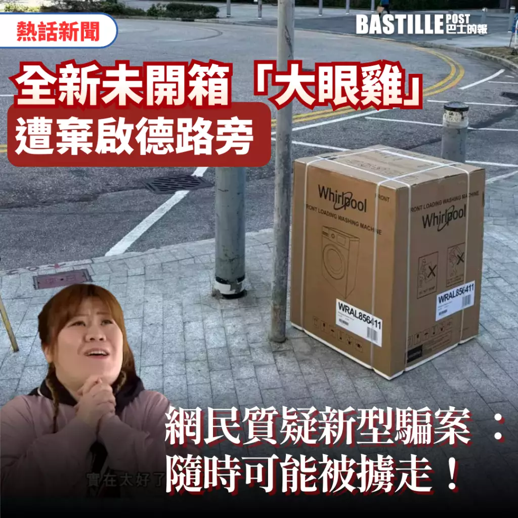 近年來各類型騙案猖獗,騙徒手法亦層出不窮。日前一部貌似全新的未開箱「大眼雞」洗衣機就被目睹遭當街「棄置」,讓人禁不住懷疑可能是最新型的騙案。