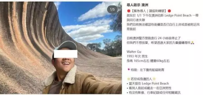 一名32歲的華裔男子Wen Ren Gu(又名Walter)在澳洲一個海灘進行潛水後失蹤,數日後一顆頭顱被沖上沙灘。小紅書圖