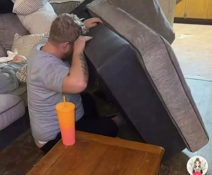 夫婦買二手梳化發現小貓藏身其中。TikTok圖片