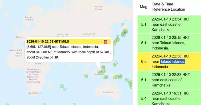 另外,根據菲律賓火山地震研究所消息,巴盧特島東南方約315公里處海域,當地周六晚約11時發生地震,震源深度10公里。