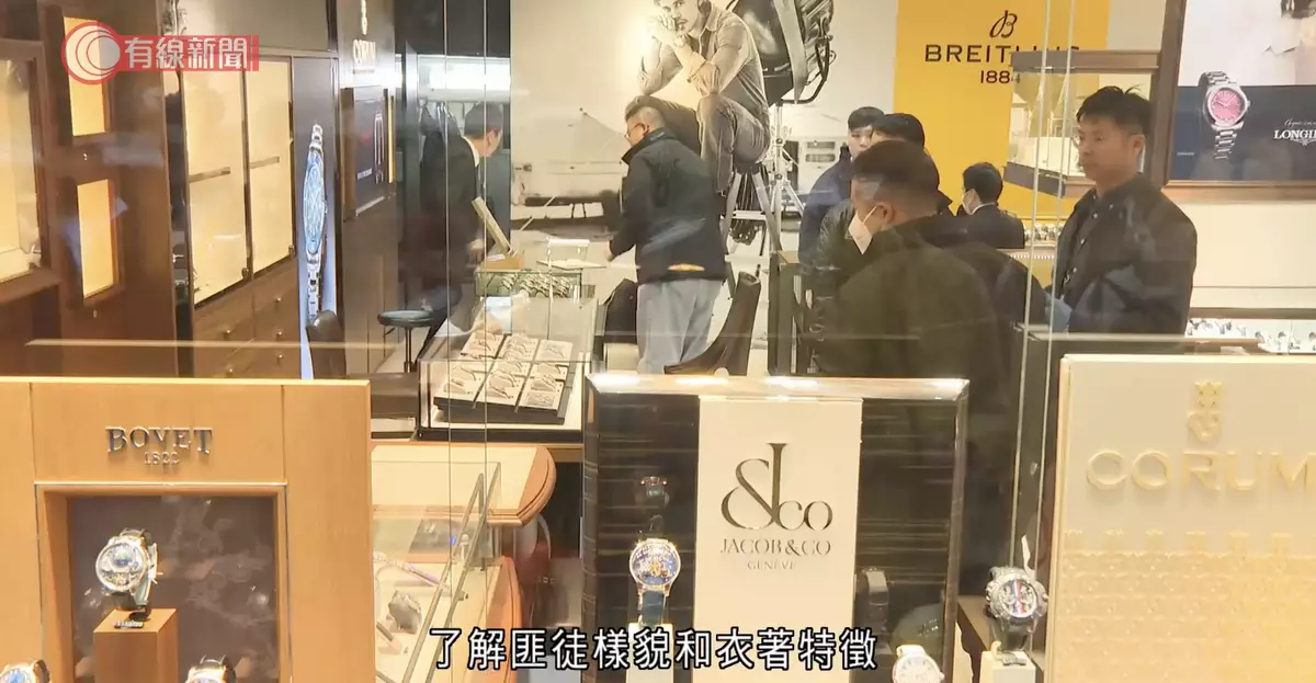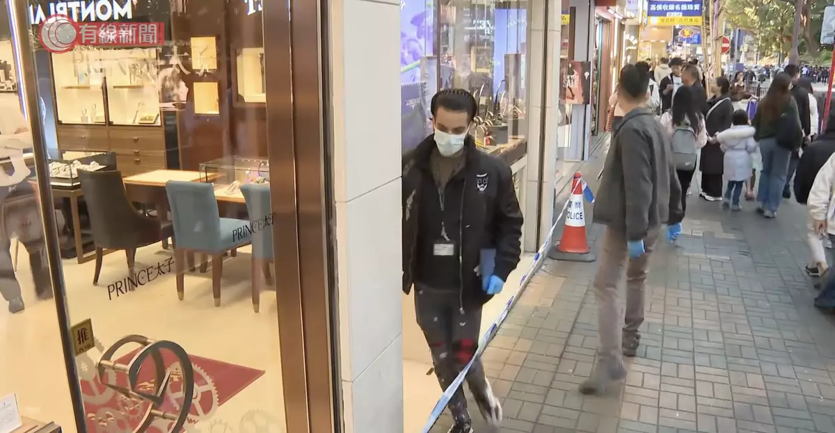 尖沙咀有珠寶錶行遇劫,警方到場調查。有線新聞影片截圖