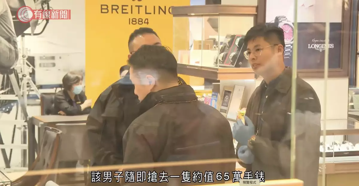 案發在海防道50號,警方在中午12時許,接獲店舖職員報案,指一名年約40歲戴口罩男子進入店內聲稱選購手錶,當店員取出手錶時,該男子隨即搶去一隻約值65萬手錶,沿樂道往北京道方向逃去。案件中無人受傷。