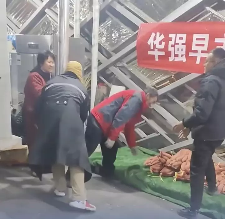 男子無力承擔白血病妻子醫藥費,獲善心人贈50噸番薯擺攤籌款救妻。影片截圖