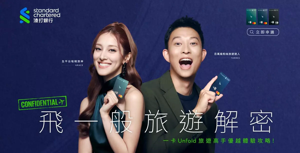 渣打香港致力為客戶提供全面的旅遊﹑生活品味及理財體驗!今次更破天荒邀得港姐靚媽陳凱琳(Grace)以及百萬訂閱Youtuber托哥(Torres)齊齊為渣打國泰Mastercard拍攝新一輪宣傳片,兩位私下十分老友,更計劃組隊為粉絲爭取加碼賺取「亞洲萬里通」里數:齊齊組隊參加渣打Team Up! Miles Up! 「里賞推薦親友計劃」!渣打國泰Mastercard客戶每次推薦親友成功出卡即可賺取基本5,000里數及額外2,000里數,足夠換取單程台北經濟艙機票1張,零成本最多可賺140,000里數!