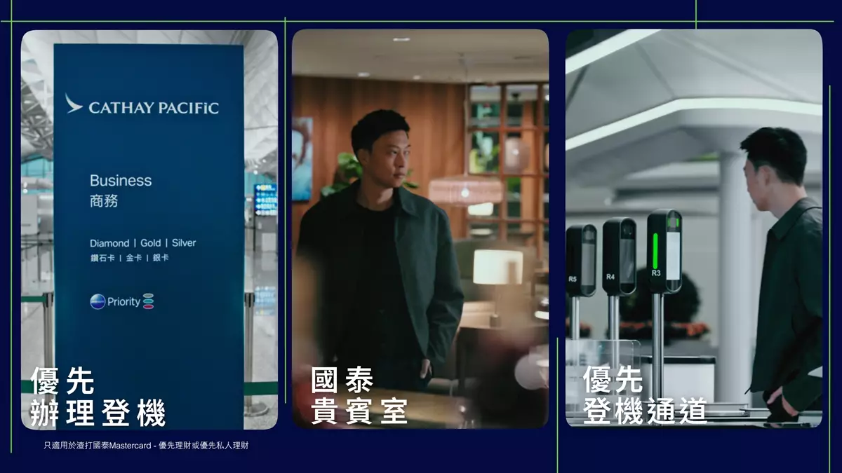 Grace一身耀目造型現身機場,並於小袋拉出一系列信用卡,向托哥細數一家大小生活日常的簽賬分配,華麗展現自己儲信用卡積分換里數、換機票再入貴賓室的精明攻略與技巧,務求震懾托哥!托哥見到Grace的落力表演後神態自若,皆因手持作為渣打國泰Mastercard - 優先私人理財信用卡客戶,日常簽賬免手續費無上限賺取里數之外,更可享優先辦理登機、尊享國泰航空機場貴賓室及優先登機服務,無需像Grace一樣以不同信用卡分配日常簽賬,以求賺得更多里數,輕輕鬆鬆成為飛行里數達人,盡情享受飛前機場禮遇。