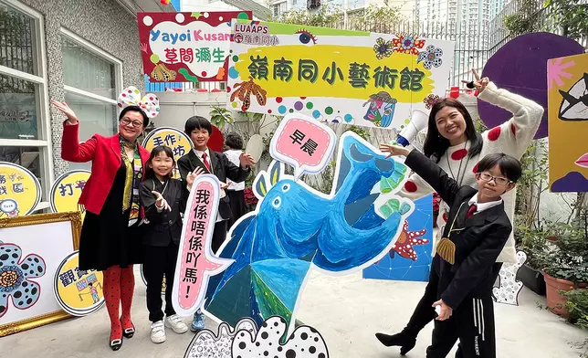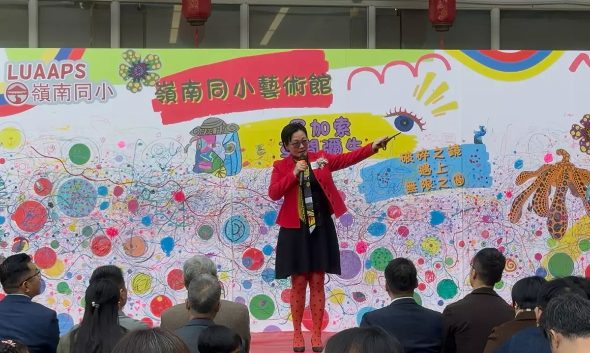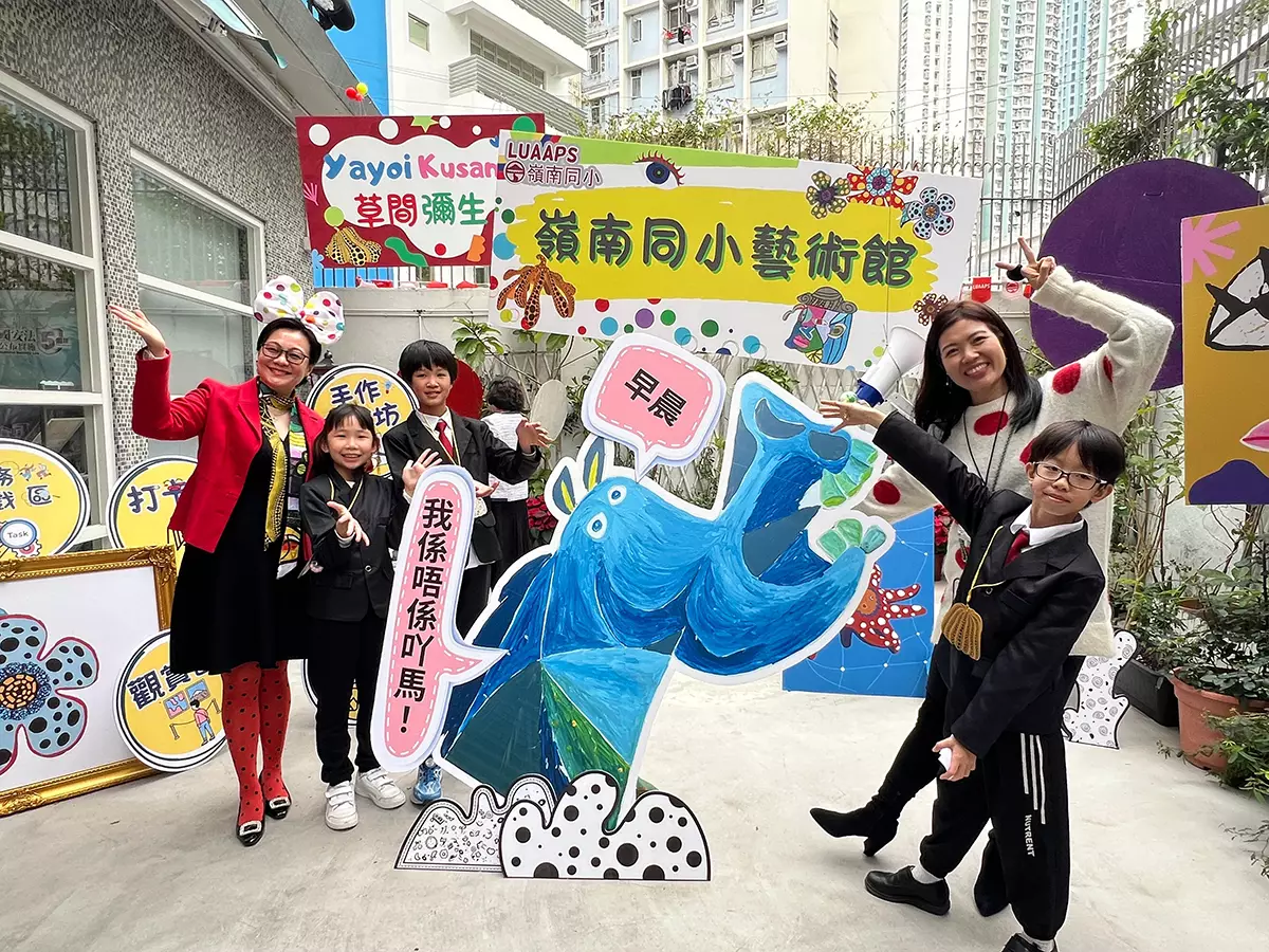 藝術,是開啟潛能的金鑰;創意,是翱翔未來的雙翼。嶺南大學香港同學會小學(LUAAPS)於星期一(1月12日)隆重舉行年度大型藝術開放日,誠邀教育局總學校發展主任(深水埗區)李兆熙先生、辦學團體校監岑展文先生,以及多間友好中、小、幼學校校長蒞臨共襄盛舉,共同見證校園華麗蛻變為充滿活力的沉浸式藝術殿堂。校方特別獲得收藏家康垚先生慷慨借出畢加索與草間彌生等大師的世界級原作真跡,與全校學生充滿巧思的創作相互輝映、交相生輝,生動詮釋了「愉快學習 創意無限」的教育願景。