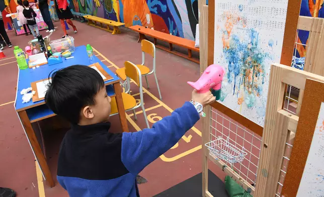 校園內更精心設計 18個互動藝術展區及角落遊戲,配合小朋友的作品化身為多感官體驗之旅。學生天馬行空的創意,今日全部轉化為觸手可及的實體冒險:致敬草間彌生的「奇幻鏡屋」以鏡面折射建構無限延伸的夢幻空間,帶來極具衝擊力的視覺震撼;結合人工智能(AI)技術的「AI創意聯盟影片觀賞」區域,引領大家走進高科技與藝術交織的未來世界;操場則化身歡樂天地,「南瓜保衛戰」、「彈珠人」及「翻滾彩色球」等大型實體遊戲,讓藝術與動感完美融合,現場歡笑聲此起彼落,盡顯「愉快學習」的豐碩成果。