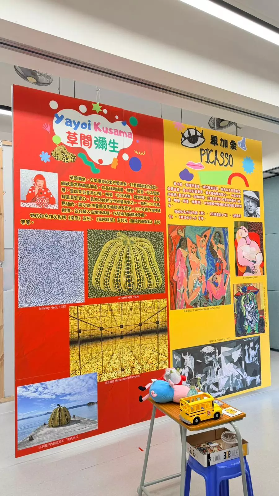 校長吳曉靈亦分享道,這種別出心裁的策展巧思,正是要讓每位學生相信:只要敢於想像,每個人都是獨一無二的藝術家。透過近距離感受畢加索的幾何解構與草間彌生的無限圓點,孩子們自信展現獨特視角,將藝術創作轉化為人人皆可擁抱的快樂體驗,生動詮釋「愉快學習 創意無限」的教育願景。