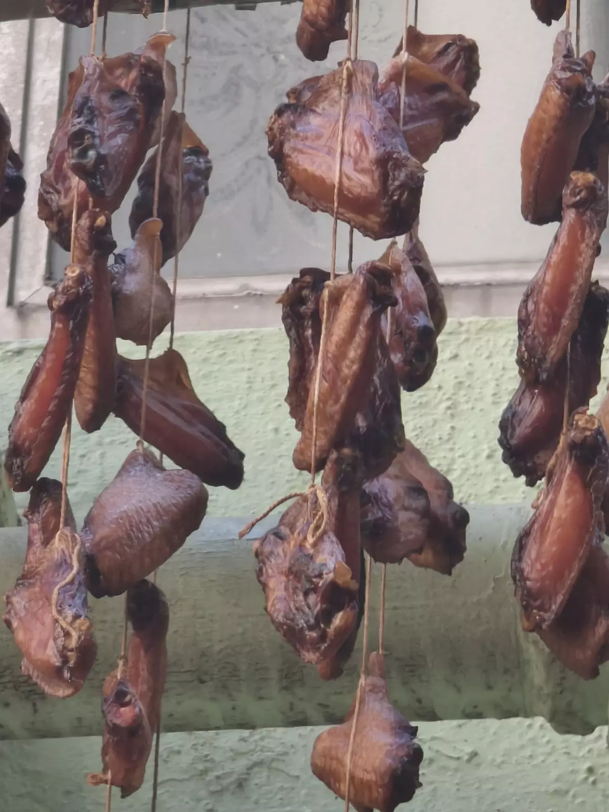 其實不止樓主覺得困惑,連網友都對着相中的晾曬的物體感到疑惑。由於形狀不規則又成塊狀,有人就猜是「臘肉」、「鴨腎」、「雞腎」、「金銀潤」、「烏魚子」、「蠔豉」、「臘魚」、「鴨髀」、「牛歡喜」等。