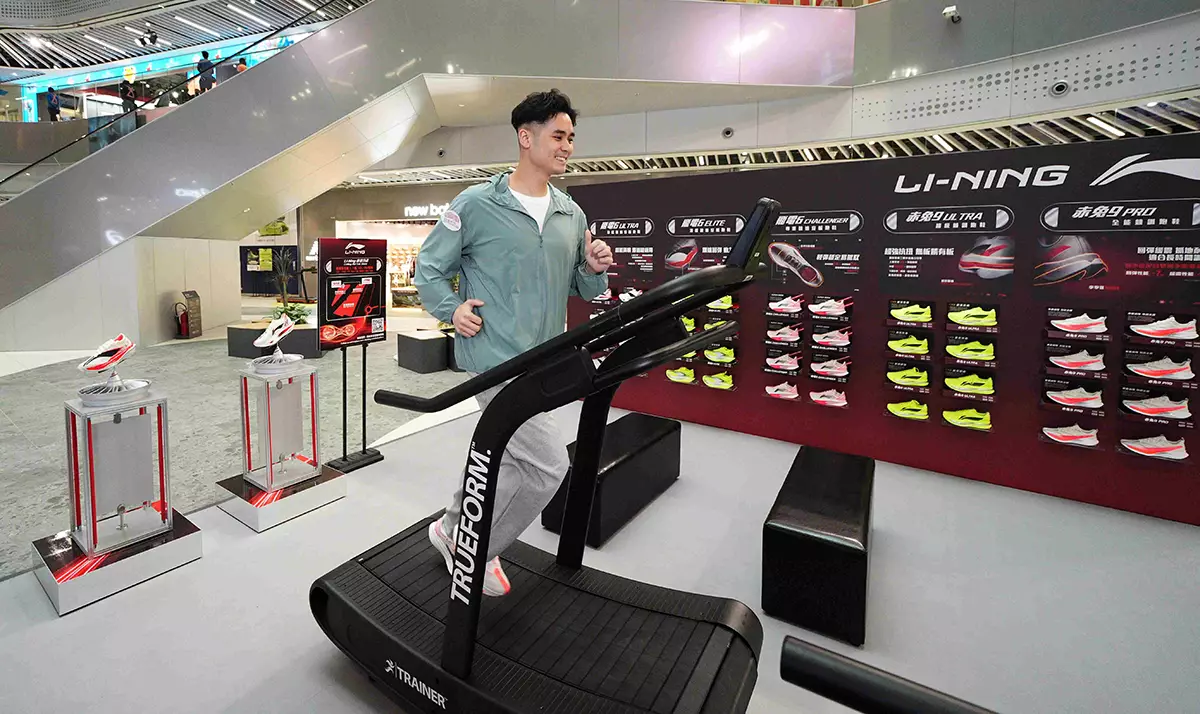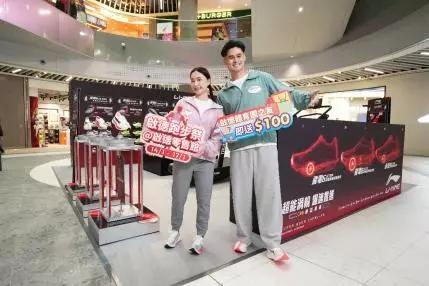 LI-NING 除了可試穿品牌皇牌系列「飛電6」及「赤兔9」外,還可嘗試1分鐘內於跑步機上挑戰「你的最佳速度」。完成挑戰後可獲贈指定優惠券,以85 折優惠於啟德零售館門店購買「飛電6」及「赤兔9」系列。