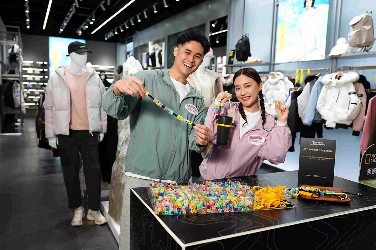 National Geographic Apparel 大家準備運動裝備時,亦可為自己的水樽增添一點獨有特別設計。運動水樽帶工作坊,以升級再回收膠粒製作獨一無二的水樽帶。即場消費即可報名參加,名額有限,先到先得。