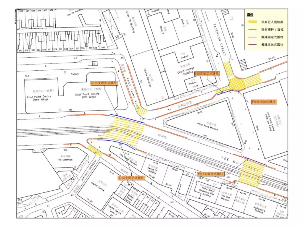 警務處、路政署和運輸署提交給灣仔區議會的文件指出,相關路段是南北走向重要行人通道。灣仔區議會文件