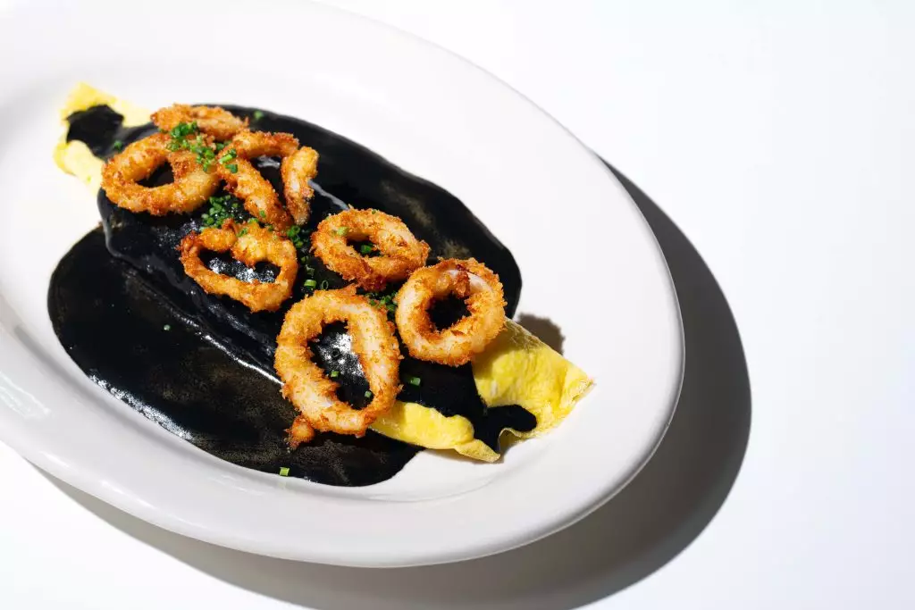 西班牙洋蔥薯仔奄列配魷魚與魷魚汁:經典奄列加入海鮮元素,魷魚的鮮味與濃郁汁液為傳統料理增添深度,口感層次更豐富。