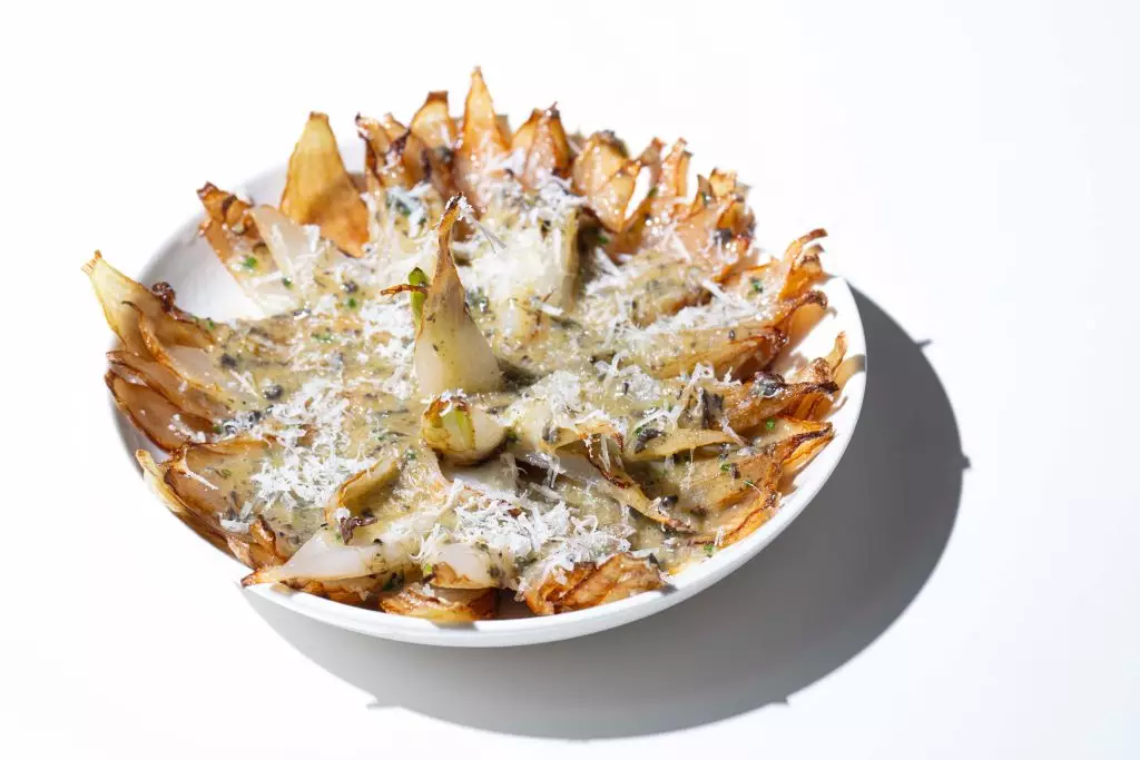 原個香炸洋蔥配曼切戈芝士、松露及蛋黃醬汁:外脆內嫩的洋蔥結合濃郁芝士與松露香氣,蛋黃醬汁更添滑順,帶來創意十足的味覺享受。