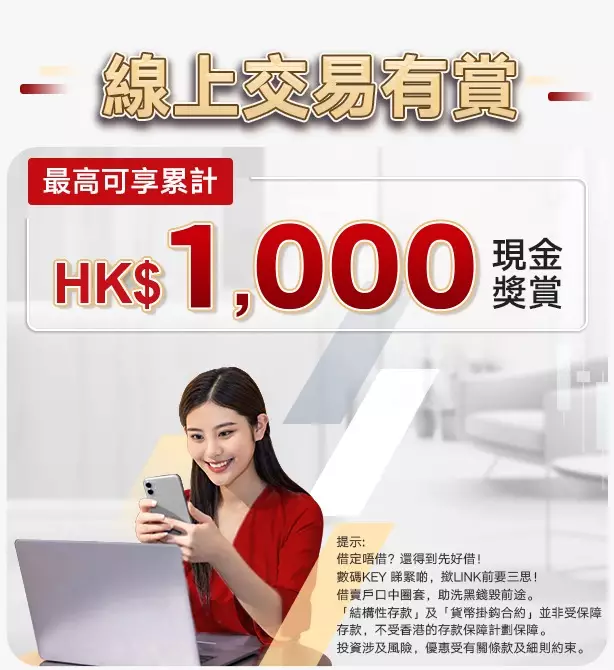 值得留意的是,今次優惠特別針對2024年10月1日至2025年9月30日未曾經線上渠道做相關交易的「新手」和客戶,例如沒有用過線上兌換、未曾於網上買賣證券,或未做過結構性存款及貨幣掛鈎合約的客戶,鼓勵大家試用更多數碼理財工具。注意,結構性存款及貨幣掛鈎合約並非受保障存款,亦涉及市場及匯率風險,入場前記得清楚了解産品性質,同時評估自己風險承受能力。