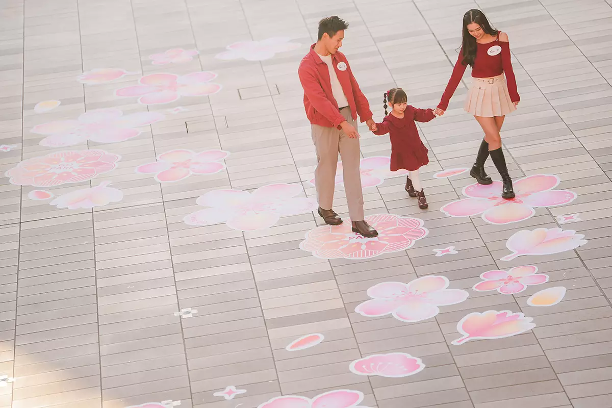 場內戶外空間以盛開桃花與飛舞花瓣打造一條貫穿全場的「桃花迎春步道」,取「步步生花一路繁華」之吉祥寓意,一起跟隨春日芬芳,踏著輕快步伐展開一場生機勃勃的探索之旅,迎接花開運轉、福氣滿門的新一年!