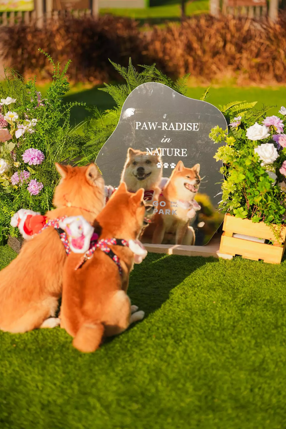 二樓晴空公園旁,以多塊不規則鏡面與繽紛花卉交織成「迎春花鏡庭園」。鏡中映照著萌寵與主人的歡樂互動,綻放的花卉點綴其間,帶來充滿生機的視覺驚喜,彷彿春日萬物復甦的盎然活力在此應運而生。今個農曆年,不妨來到這片人寵共樂的春日打卡秘境,記錄彼此「Happiness in Nature」的燦爛時光!