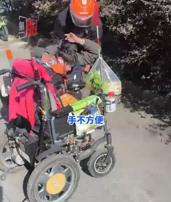 武漢3名外賣員目睹老翁連人帶輪椅翻倒,立即暫停送餐停車施救。