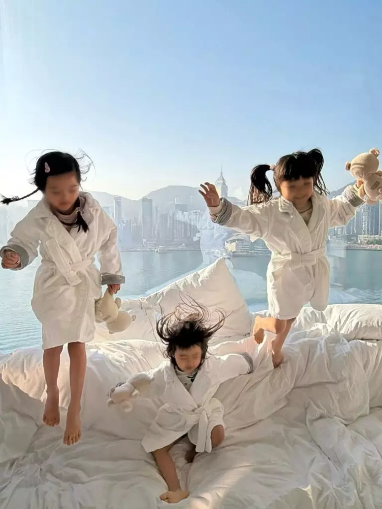 陳嘉寶在社交平台笑言:「趁着生日來了一個家庭度假,黃小姐們沒學校假期,來個Weekend Staycation剛剛好。泡泡浴、游泳、Playroom、美食、和爸爸媽媽跟小熊舒服的窩床上看Bluey。」並分享全家窩在床上看動畫的親密時光。她透露,這次短假特意配合女兒日程,雖原為自己慶生,但見三女盡興玩樂,夫妻二人同樣喜悅,簡單度過充滿歡笑的家庭周末。