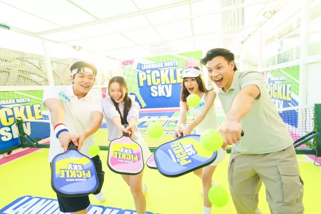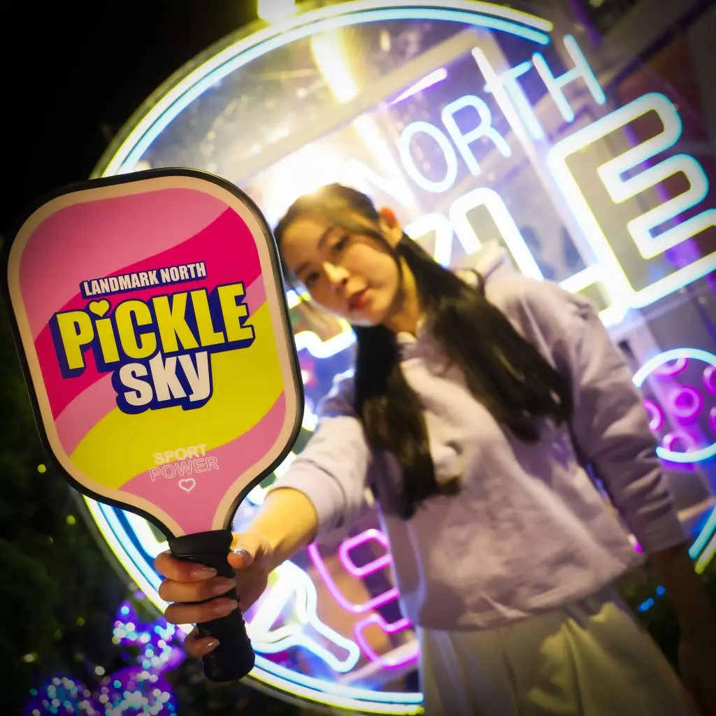 上水廣場推全港首個匹克球節「PICKLE SKY光影‧動感匹克球」 ,打造空中花園匹克球初體驗,融入光影音樂律動元素 。