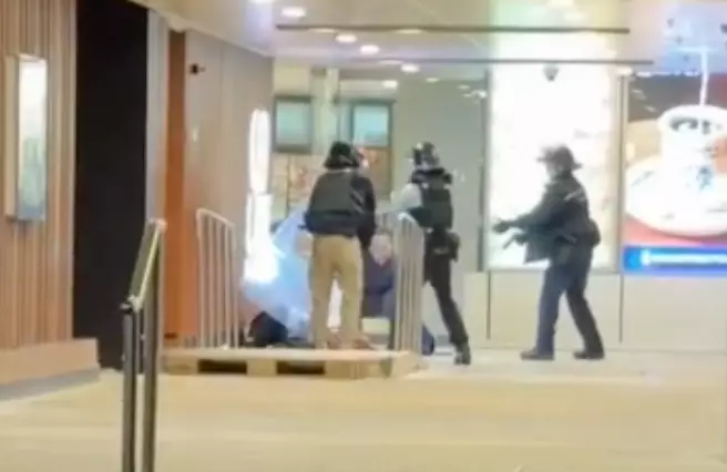 據悉警員勸止無效後,開兩槍制服持刀者,持刀者被擊中昏迷,送院搶救,事發原因仍在調查。網上片段亦見到,戴頭盔警員開槍後協助制服持刀者。其後有人詢問是否有人開槍,戴頭盔警舉手示意後,有警務人員將頭盔警帶到一旁。