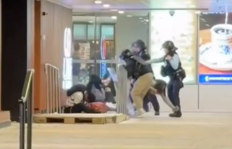 警務人員拉走早前跌倒的人。網上圖片