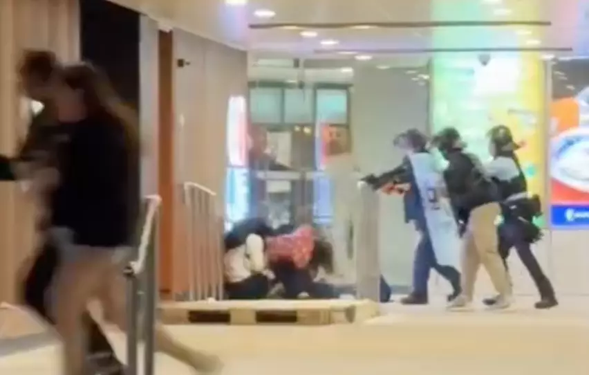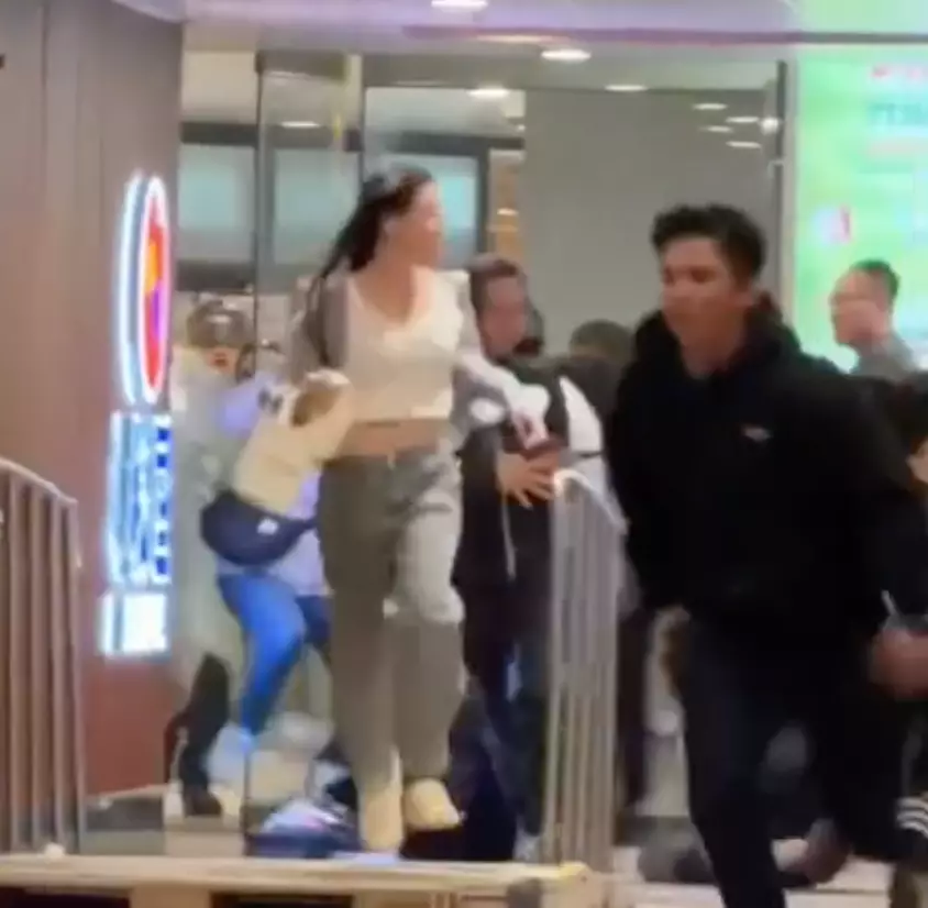 持刀者走入屯門市廣場內後,途人逃出。網上圖片