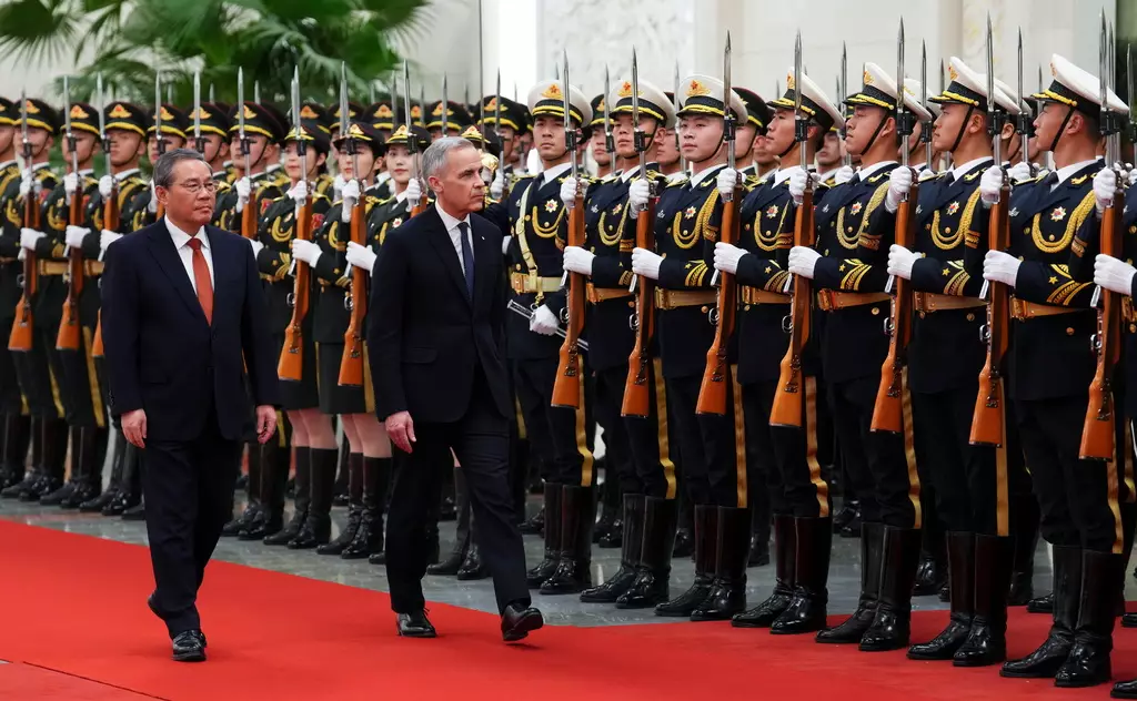 國務院總理李強在北京人民大會堂,與來華進行正式訪問的加拿大總理卡尼舉行會談。