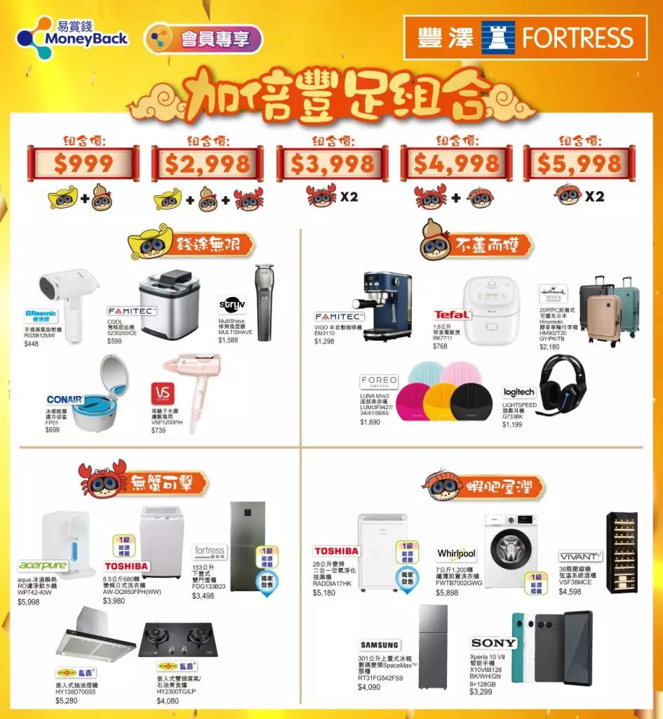 陪伴大家迎接一個「豐足滿屋」的農曆新年,豐澤精選超過800件產品以低至37折發售,新春驚喜優惠源源不絕,震撼全城。而為新年聚會增添熱鬧氣氛,豐澤更推出新春限定「魚蝦蟹遊戲套裝」,以聰豐B吉祥物為設計主角,結合經典賀年魚蝦蟹遊戲,造型可愛之餘亦充滿濃厚過年氣氛,象徵年年有餘、豐收興旺。套裝極具收藏價值,亦適合親友聚首時一同玩樂,為新春帶來更多笑聲與好運。