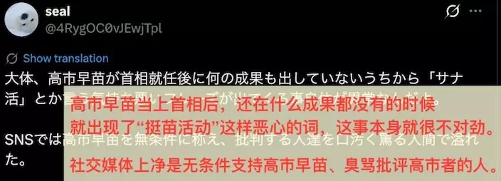 也有人質疑當前輿論環境,認為這就是高市上台後雖沒有什麼特別的政績,網絡上對她卻有不少「力挺」的原因。