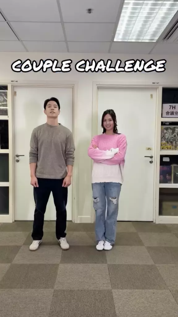 吳偉豪、游嘉欣於社交平台分享Couple Challenge的影片,吳偉豪笑言:「人地咁輕鬆,我地就… #非常檢控觀 #白逸桐 #展熊飛」游嘉欣於帖文下留言:「我好輕鬆呀」
