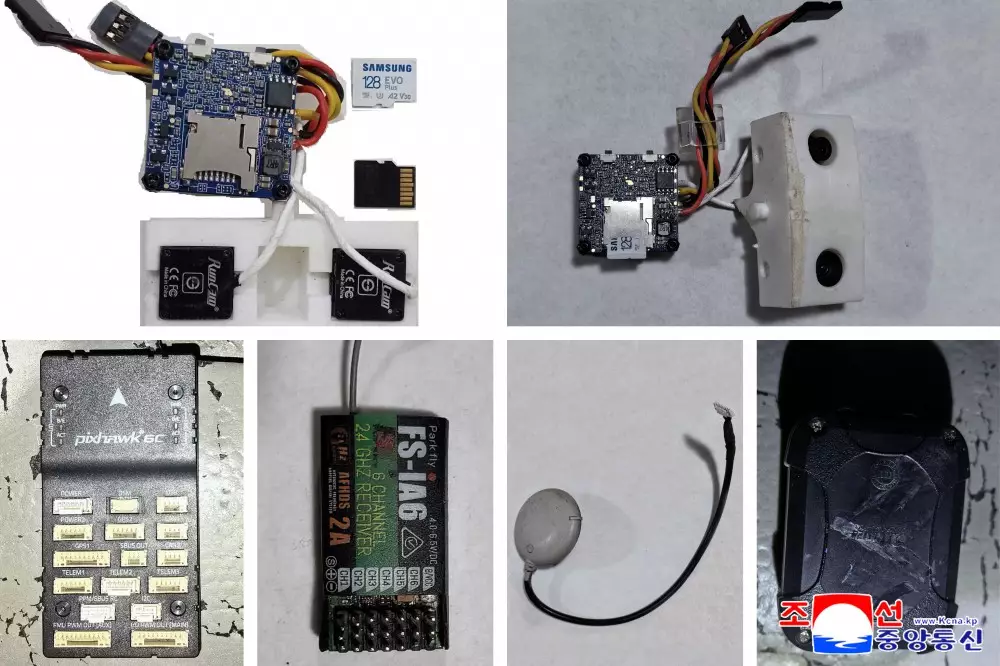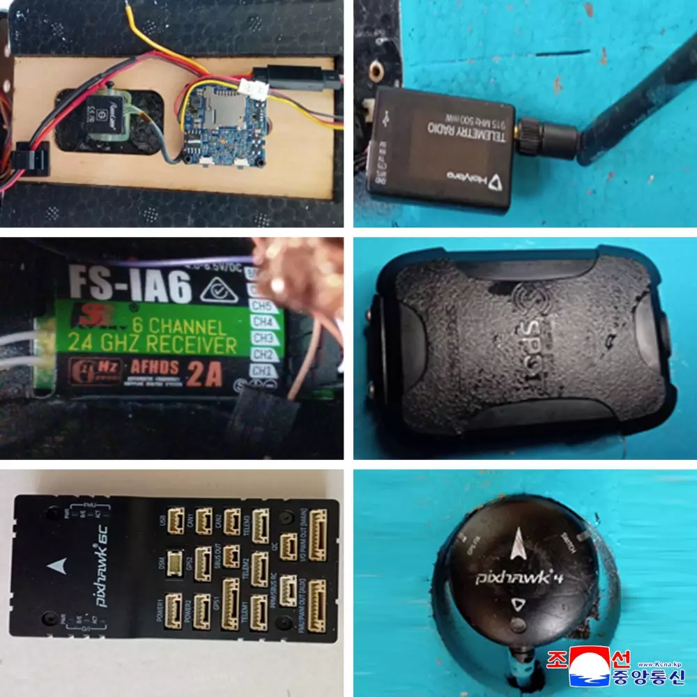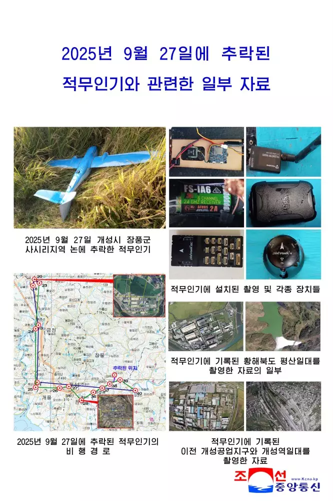 朝鮮軍方指控韓國無人機1月4日入侵領空,並展示被擊落的無人機及相關配件相片。朝中社