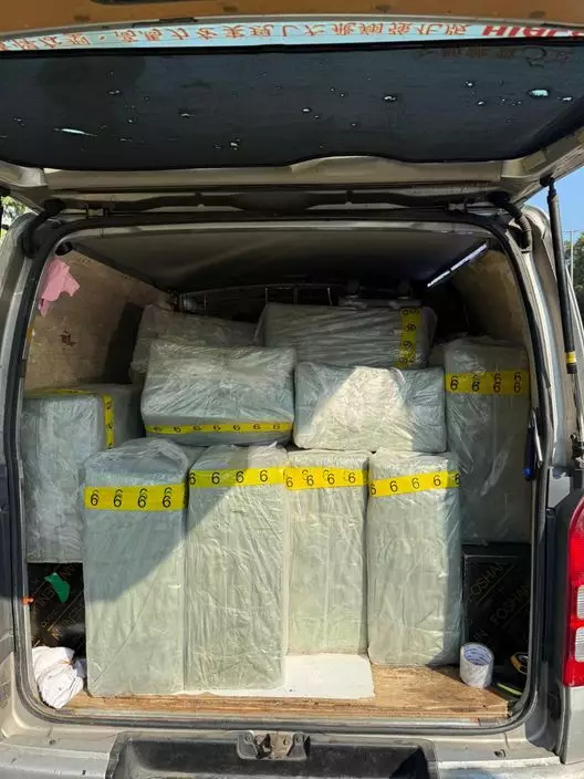 警員以涉嫌「販運未完稅香煙」拘捕車上一名41歲男司機。另外,該名男司機未能出示駕駛執照,亦涉嫌「停牌期間駕駛」、「駕駛時沒有第三者保險」被捕。他正被扣留調查。