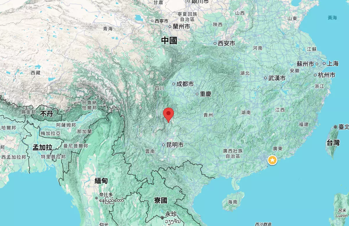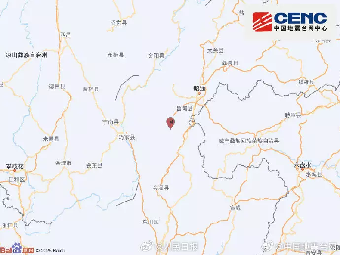 中國地震台網正式測定,晚上7時32分,雲南昭通市巧家縣發生5.1級地震,震源深度10公里。