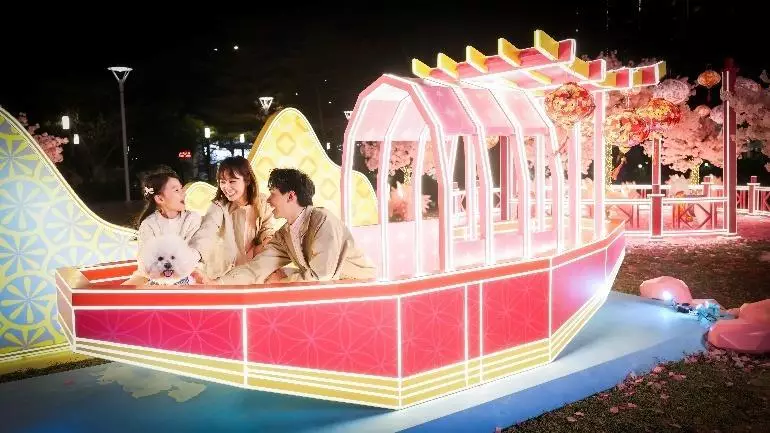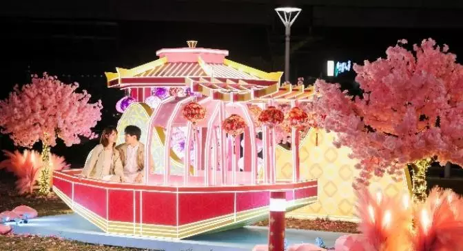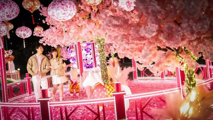 「花見春之園」以柔美粉紅主調及春花意象貫穿全場,精心打造多個夢幻打卡場景:包括讓您沉浸於繁花簇擁的寧靜浪漫,點綴寓意吉祥的駿馬小品,寄語「馬上圓滿、櫻運連連」;以及繁櫻環抱的「花舞庭園」;靈感源自園林雅致意境的「花語之亭」;寓意一帆風順、啟航迎福的「花舟迎春」!